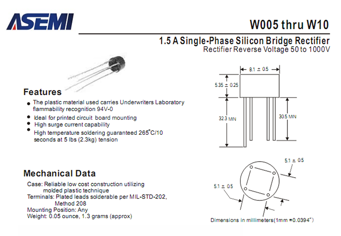 WOB圆桥整流桥相关型号:W04、W06、W08、W10