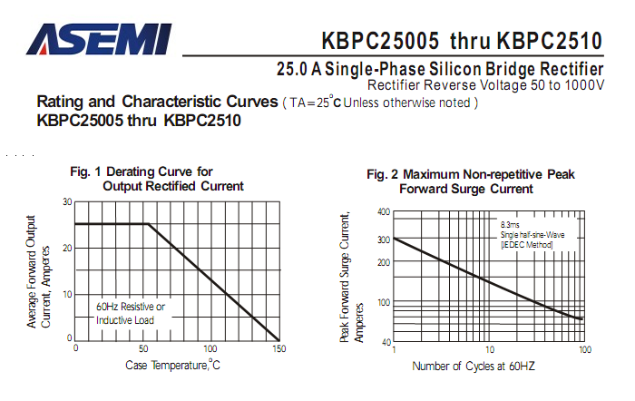 KBPC2506整流桥相关型号:KBPC2506、KBPC2508、KBPC2510
