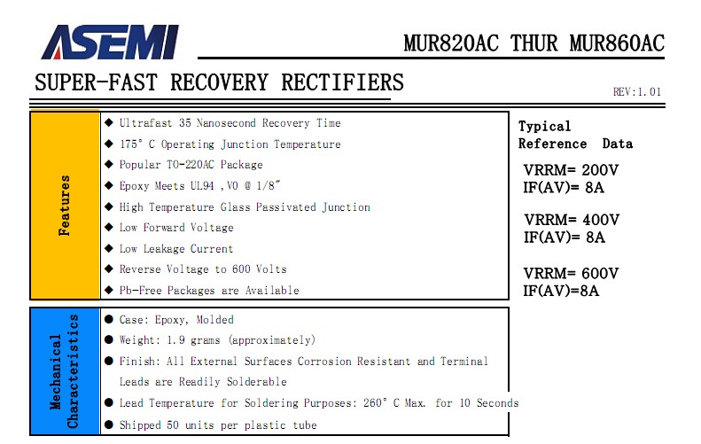 SB30100LFCT 低压降肖特基参数书 MURF520AC超快恢复二极管参数规格书下载 MBR4060PT中文资料参数书 ASEMI品牌DB105规格书 ASEMI品牌2W08参数规格书 ASEMI品牌MB10M参数规格书 超快恢复MUR2060CT规格参数书 超快恢复MUR860AC规格参数书 ASEMI品牌MB6S参数规格书 ASEMI品牌KBP206规格书