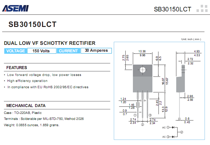 超快恢复MUR1620CT规格参数书 肖特基MBR3045CT规格参数书 ASEMI品牌DB206S规格书 ASEMI品牌KBU808参数规格书 SB1060LFCT 低压降肖特基参数书 MBR10150FCT肖特基二极管参数规格书下载 超快恢复MUR520AC规格参数书 ASEMI品牌DB155S规格书 ASEMI品牌KBU610参数规格书 3SRB3516三相整流桥规格书,ASEMI品牌
