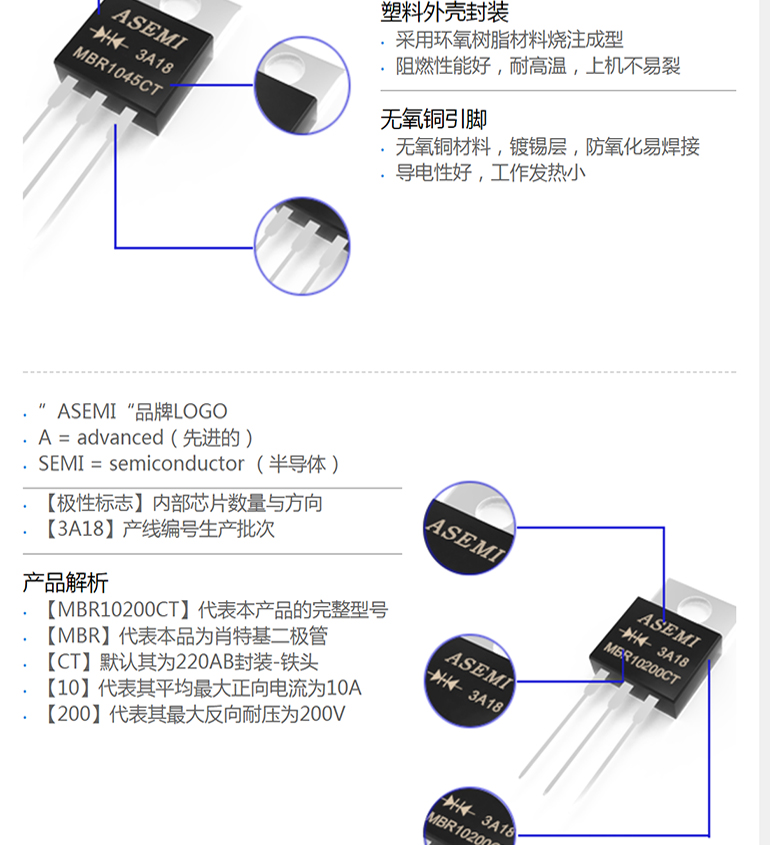 产品名称:肖特基二极管MBR1060CT,ASEMI品牌